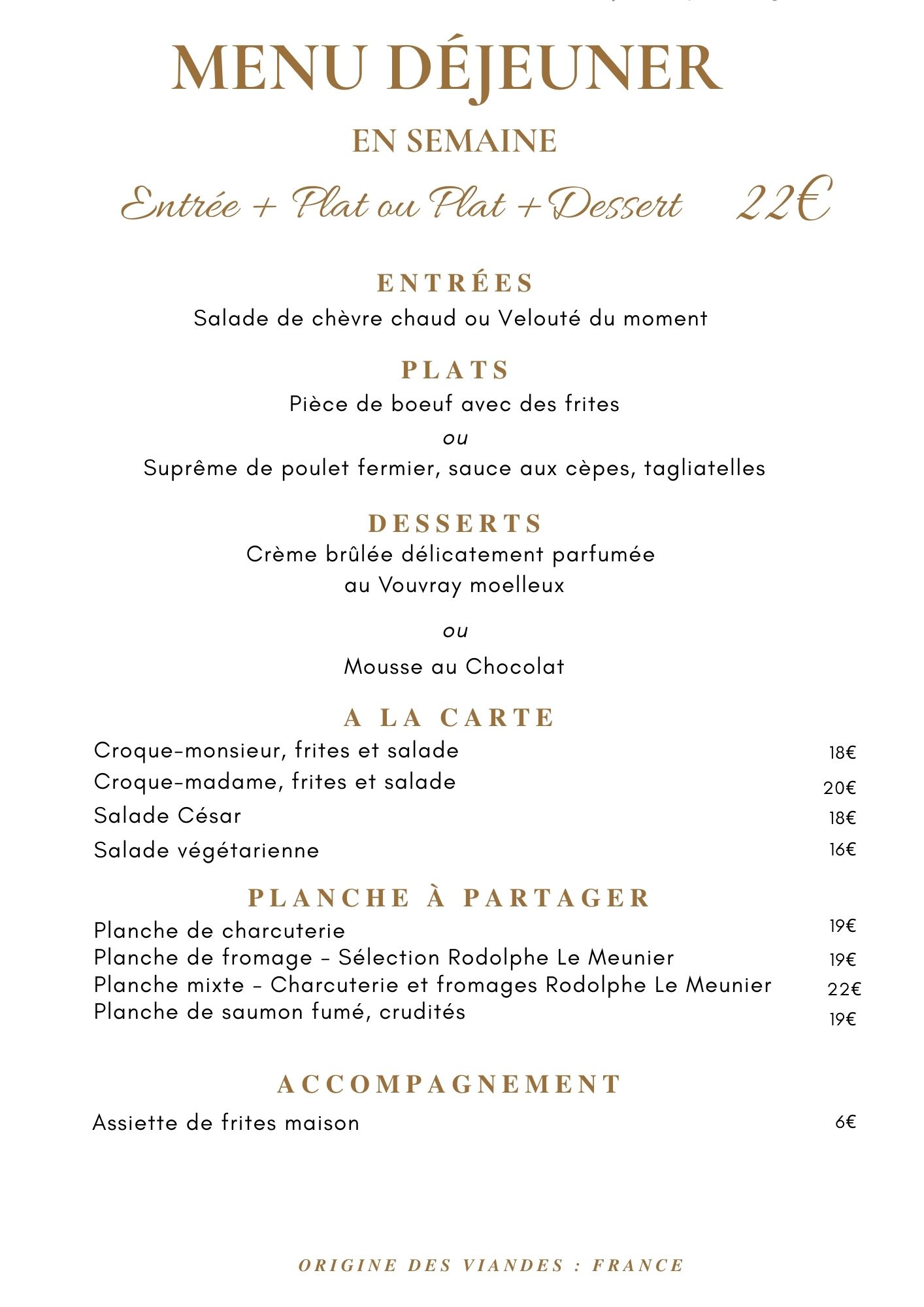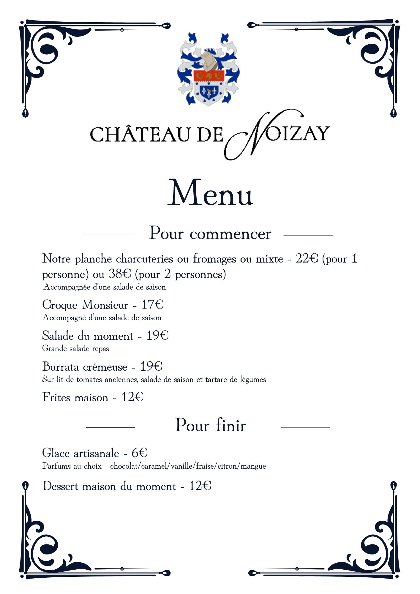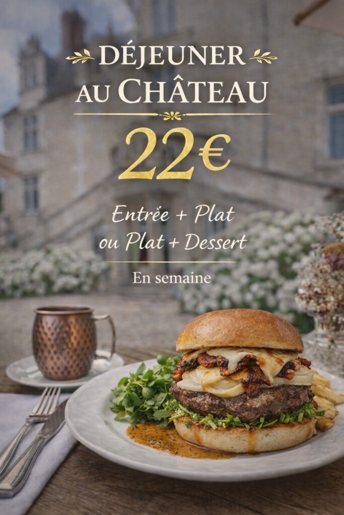 Au Château de Noizay, nous sommes heureux de vous proposer une nouvelle formule déjeuner en semaine. Dans le cadre élégant et paisible du château, profitez d’un menu à 22 € comprenant entrée et plat ou plat et dessert. Une parenthèse gourmande, accessible et raffinée, idéale pour un déjeuner entre collègues, un rendez-vous professionnel ou simplement le plaisir de s’accorder un moment privilégié au château. Réservation conseillée.