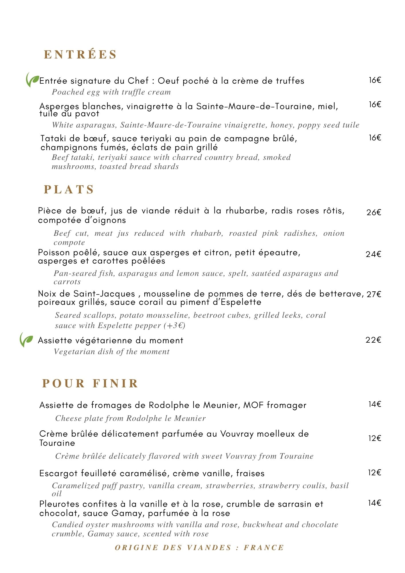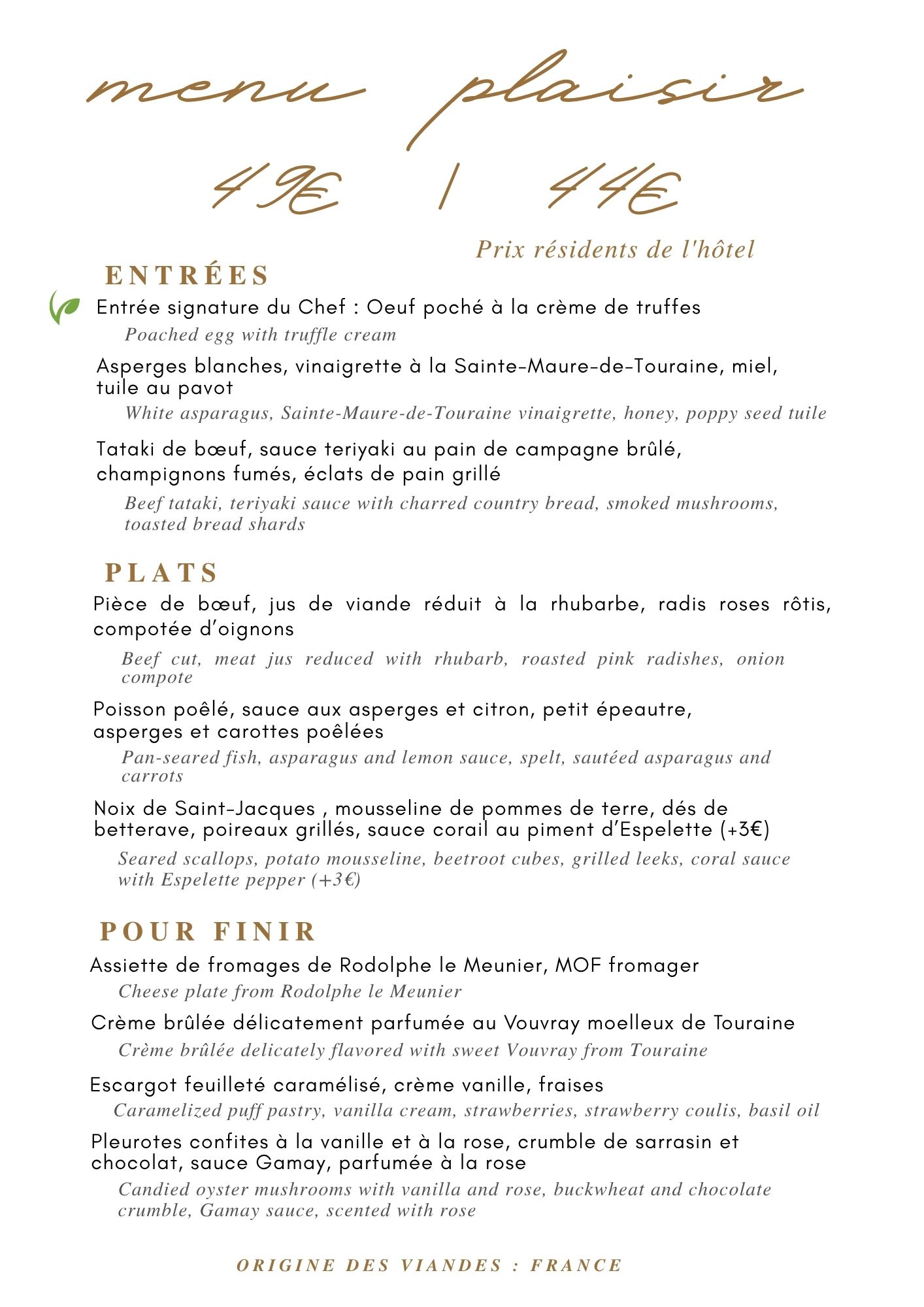 Notre chef est toujours à la recherche de l’équilibre des saveurs, afin d’apporter aux clients tous les plaisirs d’un plat réalisé avec des produits frais. Au fil des années, il s’est constitué un réseau de fournisseurs agricoles et viticoles, pour proposer à nos clients les meilleurs produits tout au long de l’année.